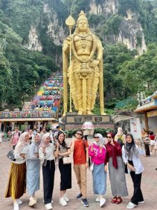 8. Jalan-Jalan ke Batu Cave Mahasiswa mengunjungi Batu Cave, sebuah tempat suci dengan gua-gua indah dan patung-patung megah. Mereka mendaki 272 anak tangga untuk mencapai gua utama dan belajar tentang sejarah serta budaya Hindu di Malaysia.